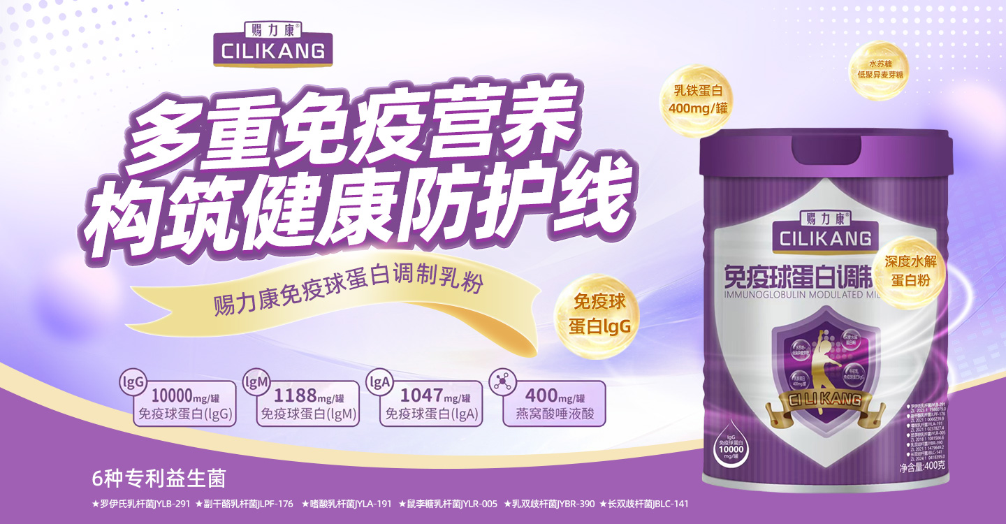 賜添力免疫球蛋白調(diào)制乳粉,多種核心營養(yǎng),科學配比,每罐添加乳鐵蛋白400mg、免疫球蛋白IgG 9500mg、免疫球蛋白IgA 1000mg、免疫球蛋白IgM 1120mg、燕窩酸400mg,還添加6種專利益生菌、乳鐵蛋白、深度水解蛋白粉等,多重免疫營養(yǎng)標本兼顧,為全家人構筑健康第一道防護線。