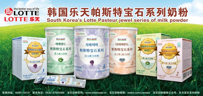 2012年青島洱東進出口有限公司與韓國樂天帕斯特乳業(yè)建立了長期戰(zhàn)略合作關(guān)系,引進韓國樂天帕斯特乳業(yè)旗下的寶石系列高端嬰幼兒配方奶粉,成為韓國樂天帕斯特寶石系列嬰幼兒配方奶粉在中國大陸的總代理,全面負(fù)責(zé)寶石系列在中國市場的運營、銷售。