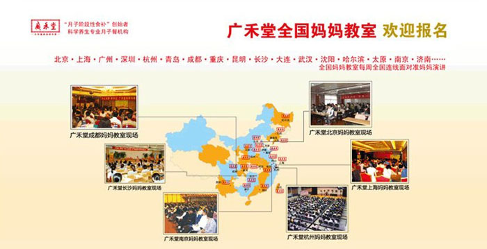 自成立以來(lái),廣禾堂分別與上!皣(guó)際和平婦嬰保健院”、“第一婦嬰浦東分院”、“長(zhǎng)寧婦幼保健院”、“上海美華醫(yī)院”、“計(jì)生委宣教中心”、“龍鳳食品”等單位密切合作,共同致力于“正確的養(yǎng)胎及坐月子方法”科學(xué)理念的推廣。