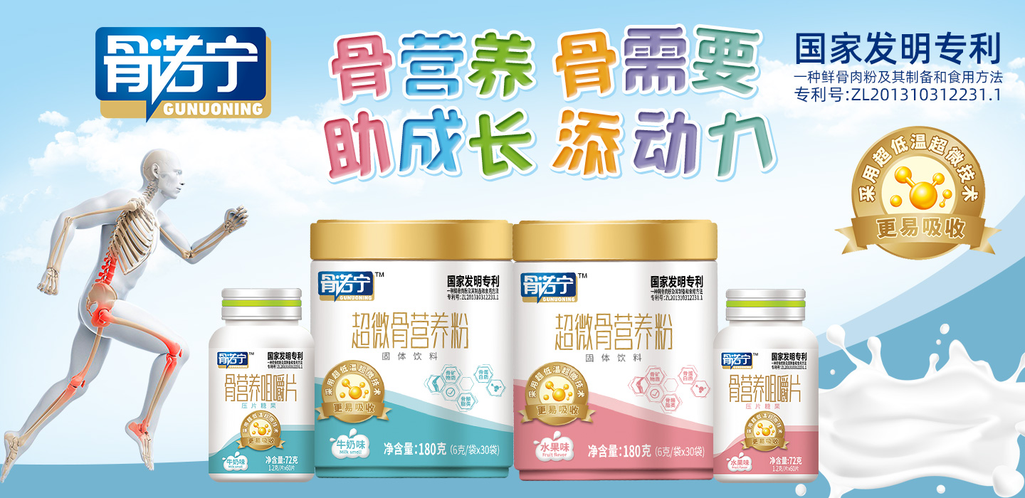 品牌名稱:骨諾寧 主營(yíng)產(chǎn)品:骨諾寧超微骨營(yíng)養(yǎng)粉,咀嚼片 品牌特色:精選原料 配方科學(xué)
