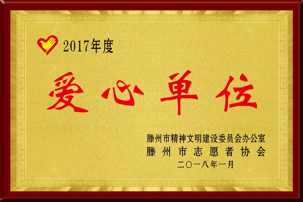 ◆1月20日,在滕州市志愿者公益年會中,山東古之滕商務(wù)發(fā)展有限公司被授為愛心企業(yè)!