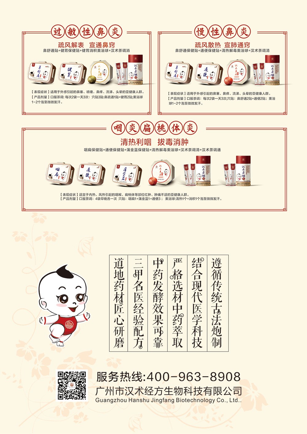品牌名稱:漢術(shù)經(jīng)方 主營(yíng)產(chǎn)品:漢術(shù)經(jīng)方保健貼,漢術(shù)經(jīng)方藥浴球,漢術(shù)經(jīng)方藥食同源固體飲料,漢術(shù)經(jīng)方鼻炎油,漢術(shù)經(jīng)方脾腎套盒,漢術(shù)經(jīng)方眼晶康套盒 品牌特色:精選原料 科學(xué)配比