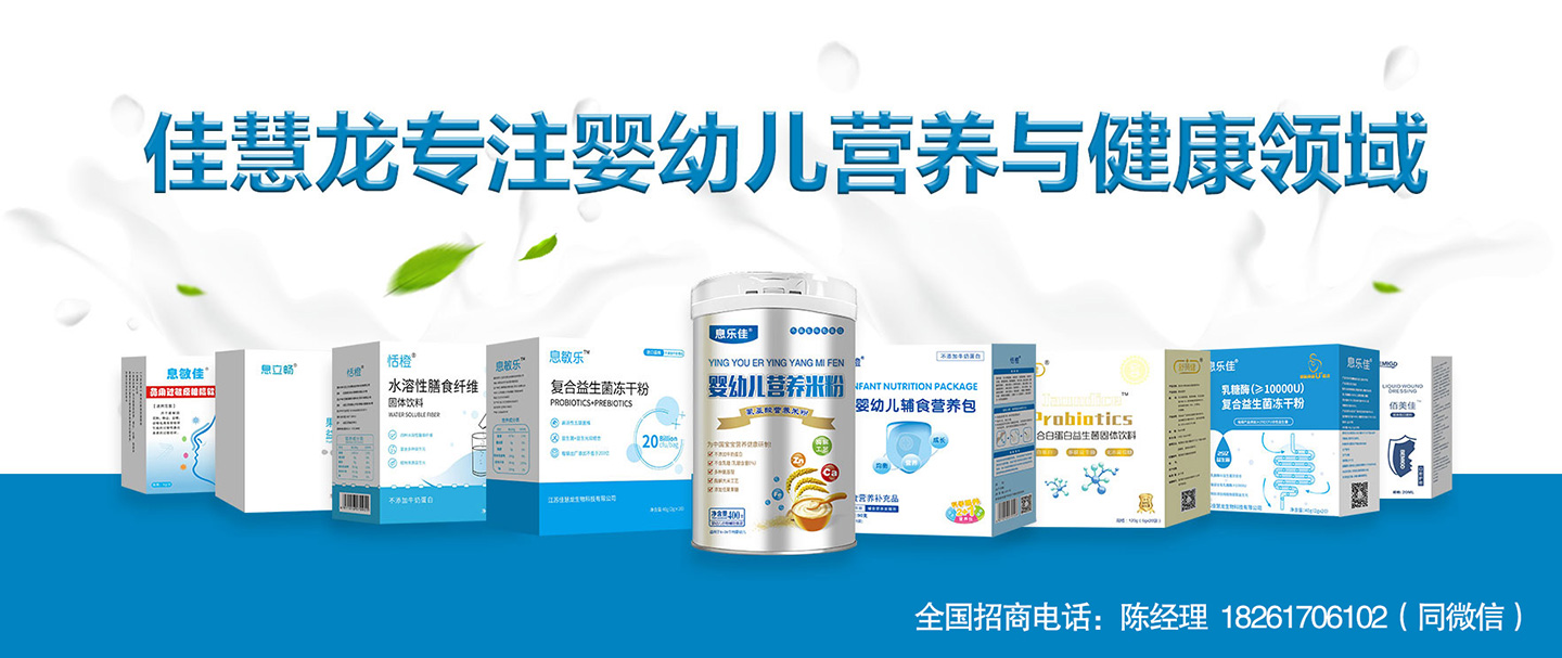 嬰幼兒營養(yǎng)專家佳慧龍公司依照食品安全中國標(biāo)準(zhǔn),對(duì)產(chǎn)品配方進(jìn)行個(gè)性化定制,使得佳慧龍產(chǎn)品系列更適合中國嬰幼兒膳食營養(yǎng)結(jié)構(gòu)和生活習(xí)慣。所有產(chǎn)品不含改造基因、不含人工添加劑、不含精制糖、不含改質(zhì)淀粉、不含鹽、不含防腐劑目前產(chǎn)品分為嬰幼兒營養(yǎng)輔食系列,嬰幼兒膳食纖維系列,嬰幼兒黃疸系列,嬰幼兒過敏系列等,我們一直秉承要給予寶寶最健康有效專業(yè)的產(chǎn)品為宗旨。