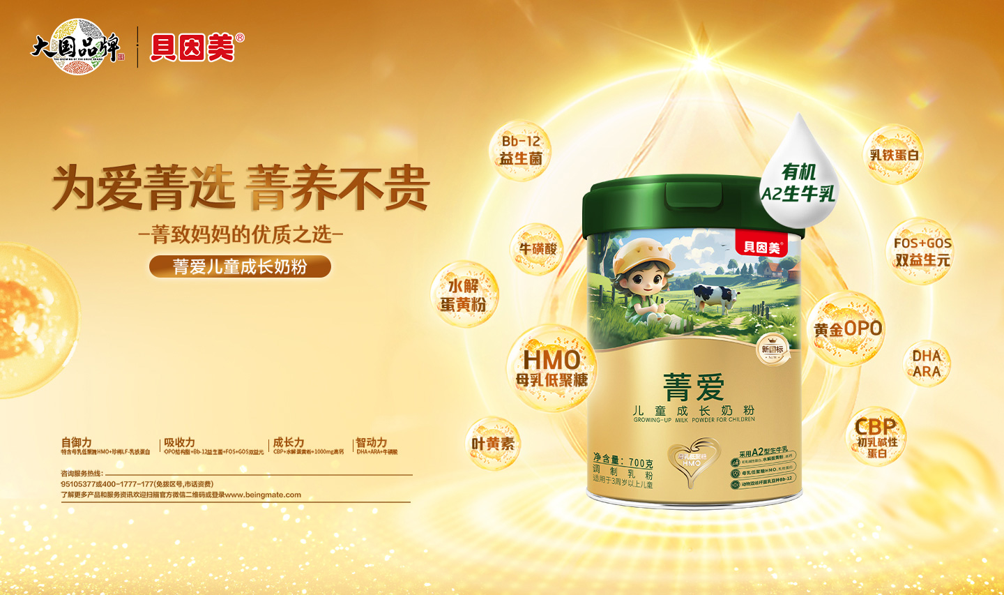 品牌名稱:貝因美 主營產(chǎn)品:貝因美菁愛幼兒配方奶粉 品牌特色:純凈有機A2奶源 干濕復(fù)合工藝