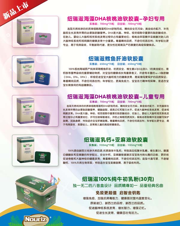 品牌名稱:紐瑞滋 主營產(chǎn)品:紐瑞滋嬰兒奶粉 品牌特色:黃金奶源 健康安全