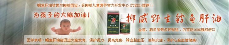 從2001年起,挪威連續(xù)6年被評為世界上生活質(zhì)量最高(最適宜居住)的國家,挪威人均用藥量只有 美國的三分之一。挪威政府十分重視孕婦和嬰幼兒的健康,2001年11月發(fā)布了為婦嬰保健人員和準媽媽 寫的《嬰幼兒營養(yǎng)指導》修訂本,全面闡述孩子喂養(yǎng)問題,其中36處提到鱈魚肝油。你想知道挪威人怎樣喂養(yǎng)寶寶嗎?挪亞公司現(xiàn)有中譯本,可到公司索取。