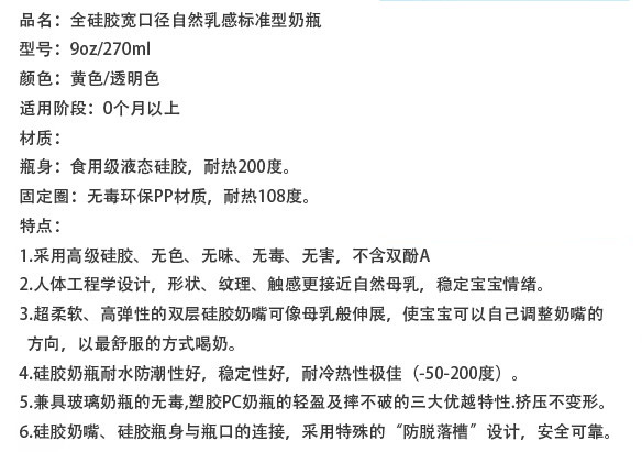 硅膠很柔軟,不用奶瓶刷用手也可以刷到奶瓶的各個角落,容易清洗。寶寶吸奶時,奶瓶會隨著奶水的減少而自動收縮,始終保持著瓶身內(nèi)外氣壓一致,避免寶寶吸入過多的空氣而導(dǎo)致嗆奶、腹脹等不適,有效解決喂奶時脹氣的煩惱,從而達(dá)到自動呼吸的功能。