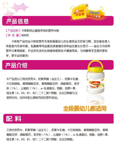 • 卡咪呢山楂麥芽嬰幼兒營養(yǎng)米粉