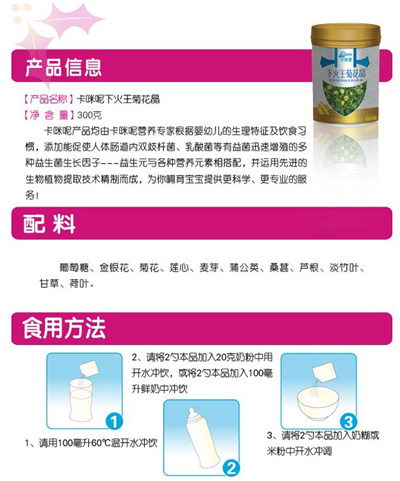 卡咪呢有機米粉系列是專為中國寶寶設(shè)計的營養(yǎng)輔食,選用有機大米,科學(xué)搭配維生素AD等維生素,還特別添加牛磺酸、DHA、AA等有助智力發(fā)育的營養(yǎng)成分,富含15種營養(yǎng)素。現(xiàn)上?ㄟ淠啬笅胗闷酚邢薰久嫦蛉珖瞻资袌鰠^(qū)域誠招卡咪呢有機米粉代理商。