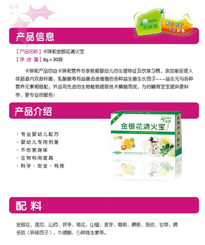 卡咪呢小兒板藍(lán)根顆粒是上?ㄟ淠啬笅胗闷酚邢薰酒煜庐a(chǎn)品,專為嬰幼兒設(shè)計(jì),專業(yè)、安全,幫助寶寶可以預(yù)防感冒抵抗病毒,是廣大父母育兒的好幫手?ㄟ淠匦喊逅{(lán)根顆粒不含任何色素、防腐劑,安全放心。