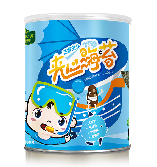 好娃娃夾心海苔系列有桶裝、袋裝兩個(gè)包裝,采用的是進(jìn)口無污染,自然生成且生長(zhǎng)周期合適的條斑紫菜