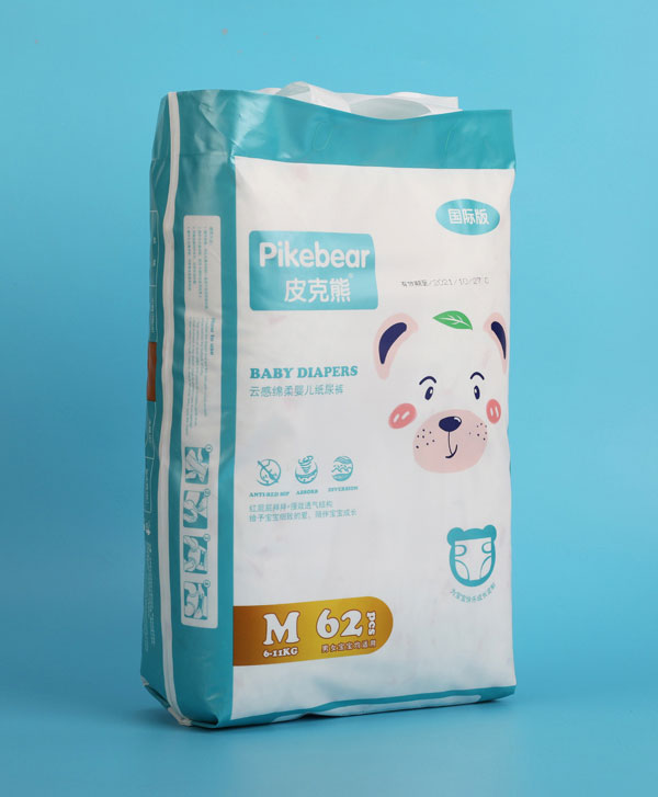 皮克熊紙尿褲采用國(guó)際優(yōu)質(zhì)柔軟材質(zhì),綿般柔軟舒適的高透氣性底膜,迅速有效的排出悶熱濕氣和氨氣,保持近皮膚觸感,清新無(wú)比。