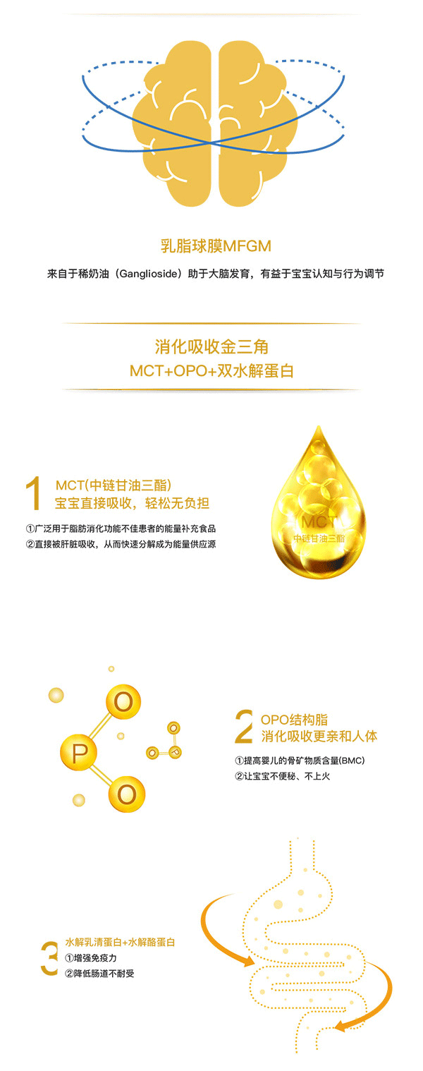 營(yíng)養(yǎng)夠,易吸收才是好奶粉。喜安智較大嬰兒配方奶粉,消化吸收新升級(jí)。100%原裝進(jìn)口,采用全新的MFS脂肪升級(jí)技術(shù),讓寶寶對(duì)脂肪的消化吸收更加nearto母乳,提高對(duì)于奶粉當(dāng)中脂肪和鈣的吸收。