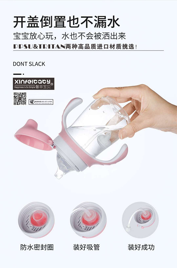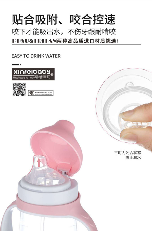 馨菲寶貝防噴防漏鴨嘴學(xué)飲杯,有Tritan、PPSU兩種高品質(zhì)進口材質(zhì)挑選,均有抗摔杯體、環(huán)保無味、不含BPA的特點,健康安全;