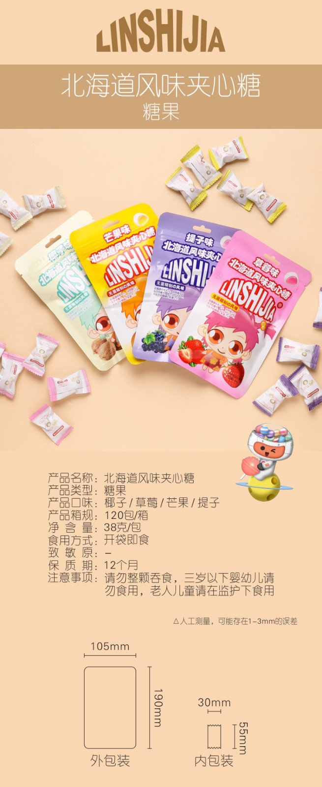 • 林食佳38g北海道風(fēng)味夾心糖 芒果味