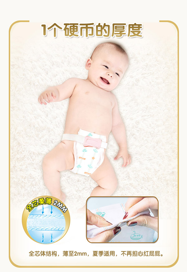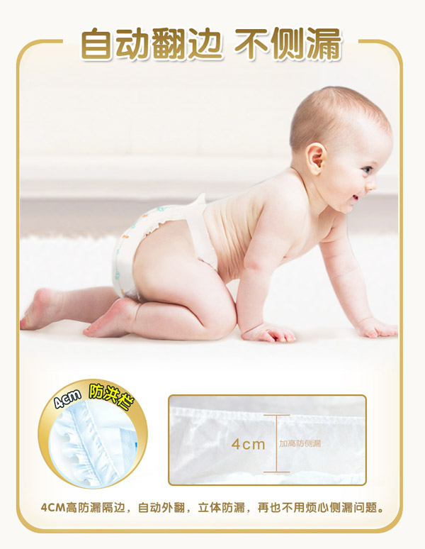 宜片無憂童趣紙尿褲采用熱風(fēng)材質(zhì),親膚柔軟,選用柔軟熱風(fēng)凸點無紡布作為面料,具有蓬松度高,彈性好,手感柔軟,透氣性好等特點,寶寶穿著舒適,玩的開心,睡得安心。