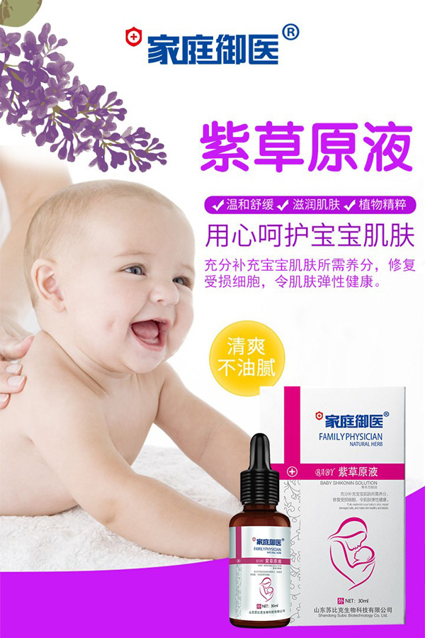 家庭御醫(yī)紫草原液根據(jù)嬌嫩肌膚研制,性質(zhì)溫和,純中草藥配方,甄選上好的軟紫草-新疆軟紫草作為主要成分,萃取天然植物原液精華,確保產(chǎn)品安全無副作用,給寶寶更周全的植物防護(hù)。