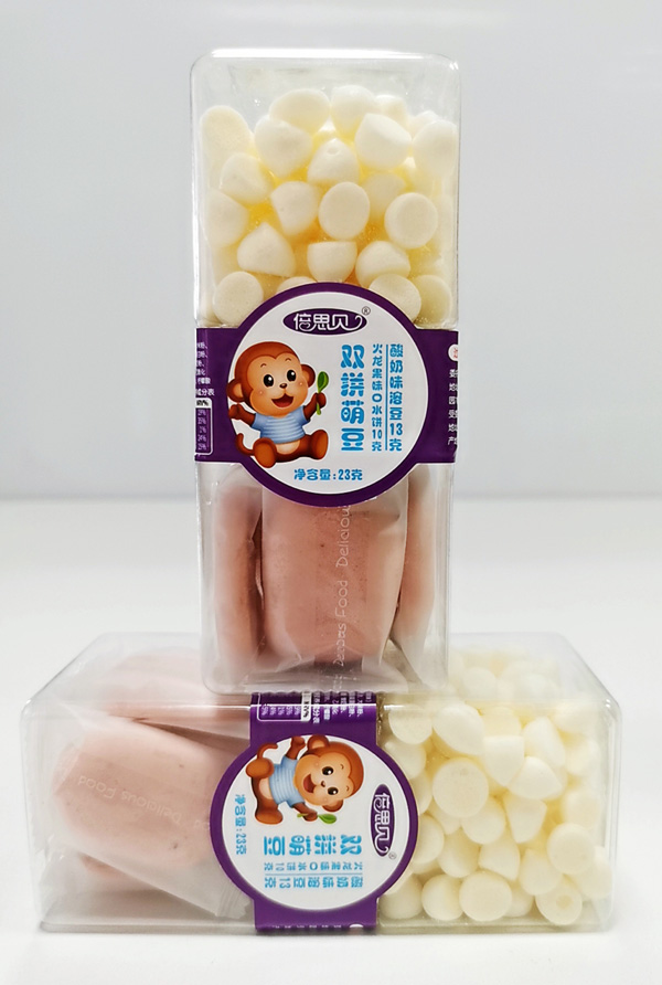 倍思貝雙拼萌豆系列,甄選優(yōu)質(zhì)原料,采用先進烘焙工藝制作,特別融合酸奶、果蔬等食材,碰撞出別樣美味,口水餅+溶豆雙拼組合,同時享受兩種美味,樂趣無窮。四種組合口味,分別為酸奶味口水餅+獼猴桃味溶豆、火龍果味口水餅+酸奶味溶豆、火龍果味口水餅+香橙味溶豆、酸奶味口水餅+火龍果味溶豆,巧妙雙拼,美味享受,而且無多余添加,易消化,無負(fù)擔(dān),更健康。