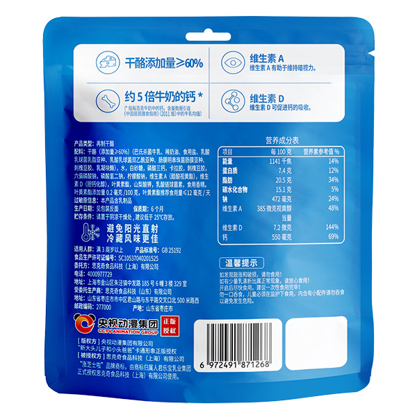 漲芝士啦奶酪棒甄選優(yōu)質(zhì)原材料,濃縮牛奶精華,約5倍牛奶的鈣,干酪添加量≥60%。富含維生素A、維生素D、葉黃素酯,營養(yǎng)全面補(bǔ)充。
