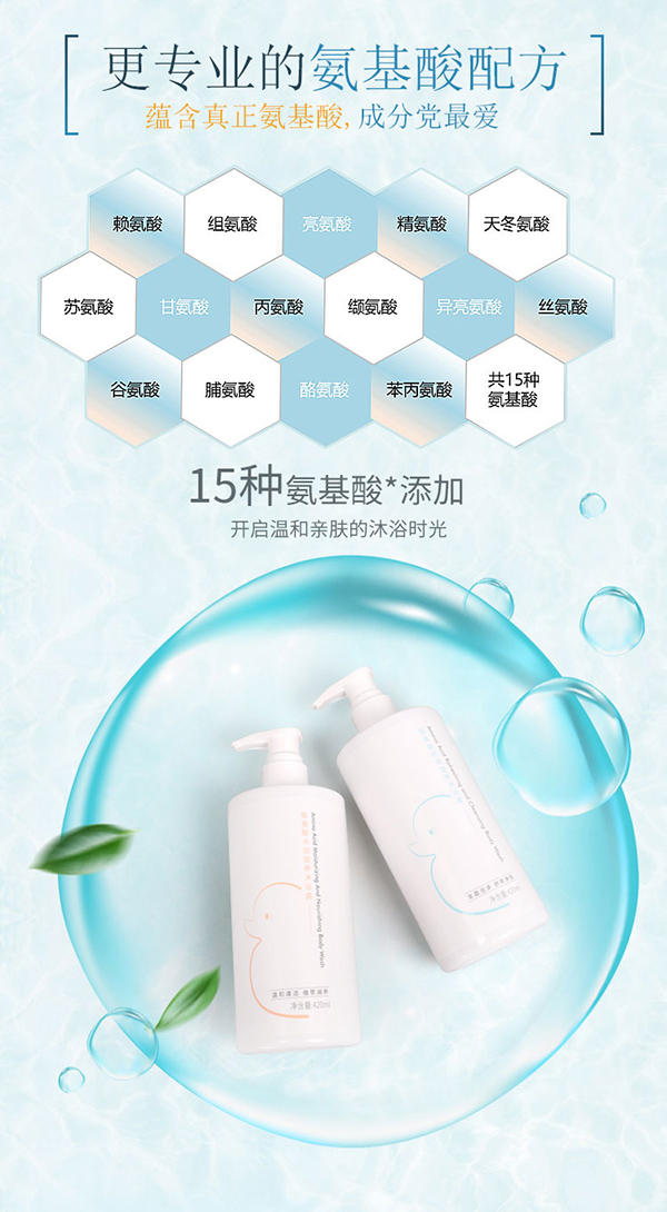 15種氨基酸添加,開啟溫和親膚的沐浴時光