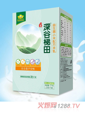 1.金盾愛嬰深谷梯田益生菌小米配方米乳,具有百合蓮子、果蔬繽紛、核桃紅棗、淮山薏米四個配方,分為罐裝和盒裝兩種,口味齊全,營養(yǎng)豐富,