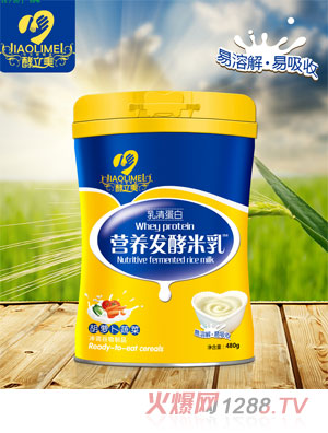 1.酵立美發(fā)酵米乳是以大米、小米等五谷和脫脂乳粉為主要原料,以腸胃道營養(yǎng)益生菌(嗜酸乳桿菌或動物雙歧桿菌)作發(fā)酵劑,經(jīng)烘烤、糊化、酶解、調配、菌解等工藝,制成口感細膩,質地均勻,有大米或相應五谷的焦奶香味,不添加食用色素和防腐劑的發(fā)酵米乳。