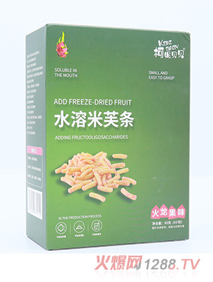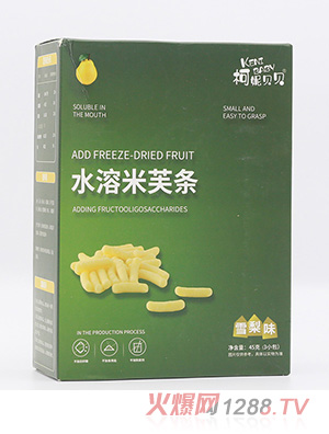 柯妮貝貝水溶米芙條系列經(jīng)過嚴(yán)苛的把關(guān),層層精細(xì)制作,精選優(yōu)質(zhì)大米原材料,經(jīng)過科學(xué)的營養(yǎng)配比,拒絕添加白砂糖、食用鹽等不適宜孩子身體的成分,入口香脆,營養(yǎng)美味!