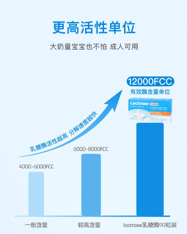 樂(lè)迪士乳糖酶,采用植物源性乳糖酶,耐胃酸能力遠(yuǎn)遠(yuǎn)超過(guò)動(dòng)物源乳糖酶,健康更高效。12000FCC高活性,成分簡(jiǎn)單,不含葡萄糖/乳清蛋白等成分,植物提取,高活性,耐胃酸。