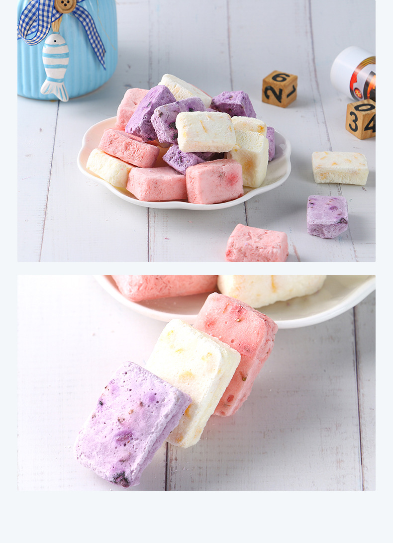 • OEM貼牌凍干果粒酸奶塊3克即食型草莓藍(lán)莓味益生菌塊口味定制源頭