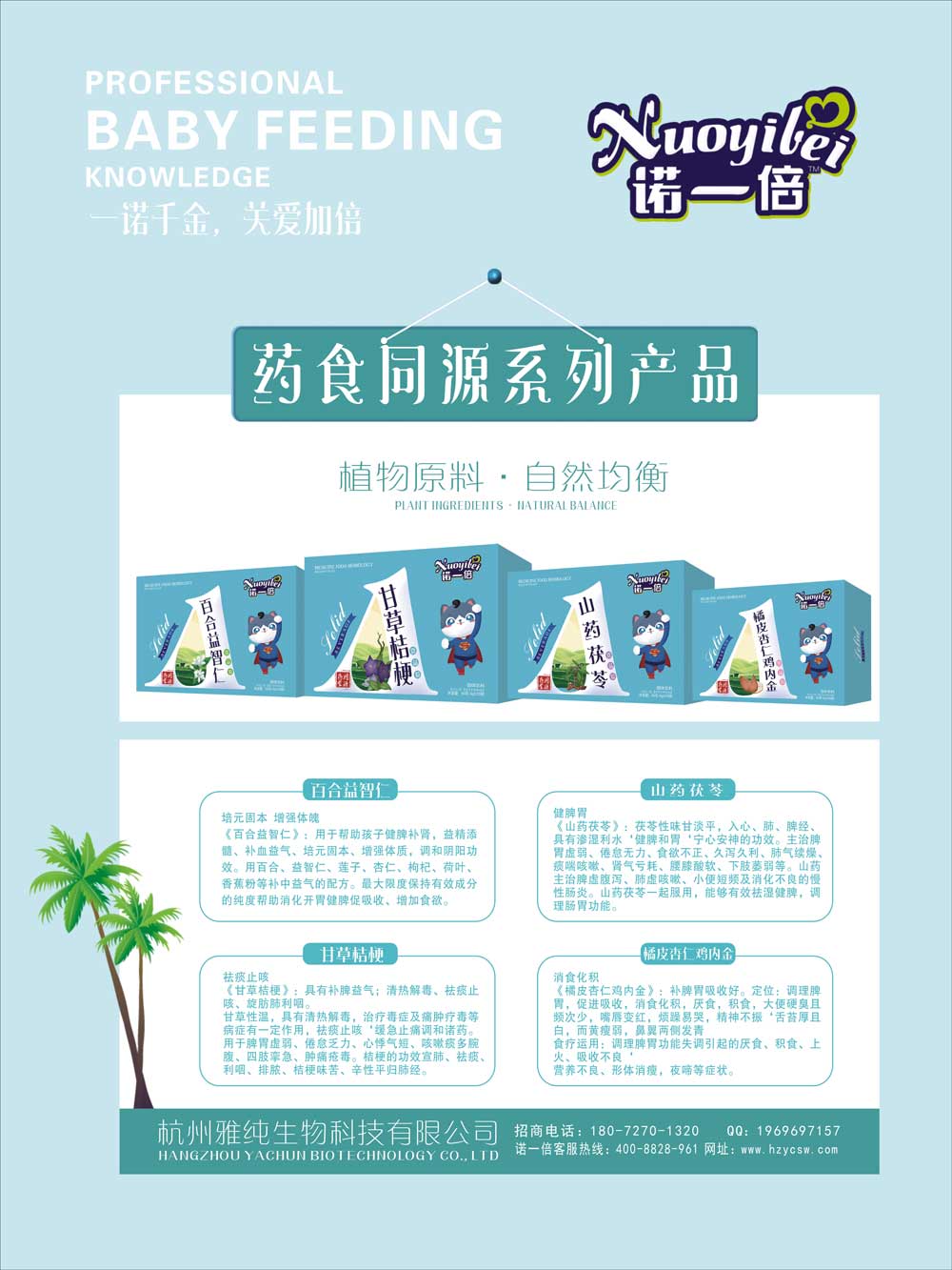 “諾一倍”是杭州雅純生物科技有限公司旗下品牌,專注于嬰幼兒輔食及樣品的研發(fā)生產(chǎn),取材純凈、配方安全,嚴(yán)謹(jǐn)?shù)纳a(chǎn)標(biāo)準(zhǔn),科學(xué)的萃取工藝,精準(zhǔn)無(wú)誤的每個(gè)環(huán)節(jié),充分保留成分中的活性有機(jī)物質(zhì),以確保寶貝們能享受更安全、更營(yíng)養(yǎng)、更均衡的健康產(chǎn)品!