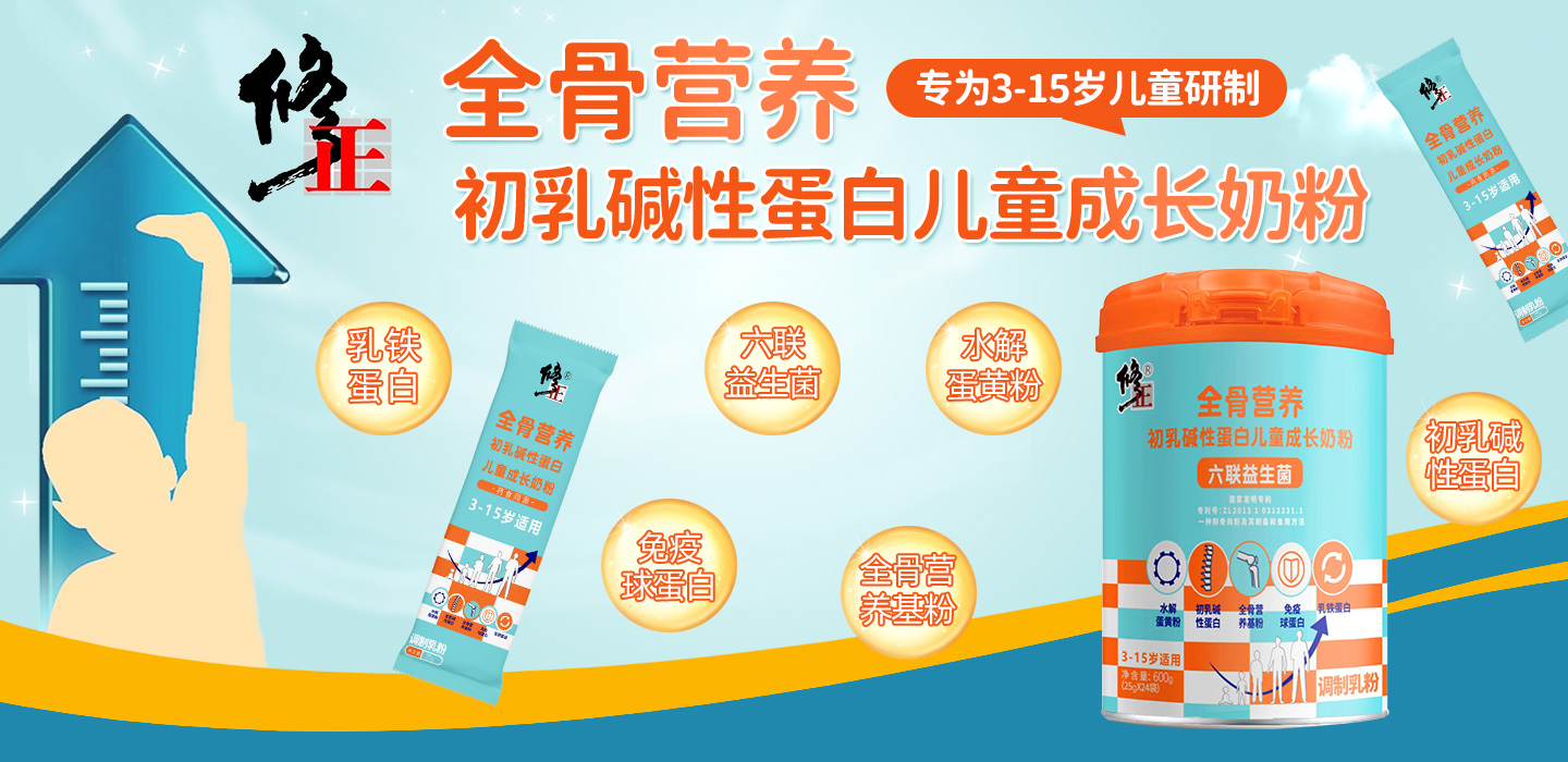品牌名稱:修正 主營(yíng)產(chǎn)品:修正全骨營(yíng)養(yǎng)初乳堿性蛋白兒童奶粉 品牌特色:科學(xué)營(yíng)養(yǎng) 助力成長(zhǎng)