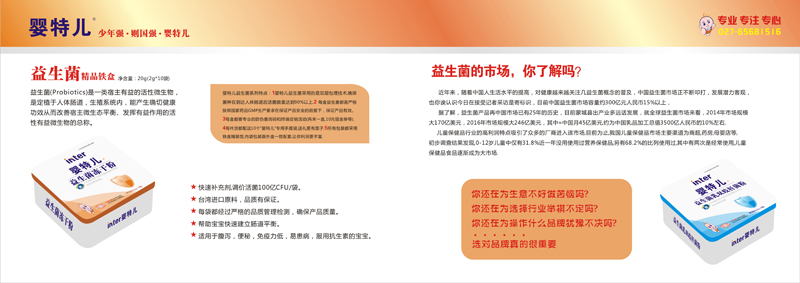 嬰特兒是湖北英賽特醫(yī)藥科技有限公司旗下的嬰童保健品牌,是一家從事嬰幼兒營養(yǎng)保健品的公司,關(guān)注您的健康是我們的使命,呵護(hù)您的快樂是我們的追求!我們將以強(qiáng)大的科研力量,不斷推出優(yōu)質(zhì)品種、不斷提升企業(yè)的綜合競(jìng)爭(zhēng)力,將“嬰特兒”系列品牌成為健康產(chǎn)業(yè)領(lǐng)域的主力品牌。