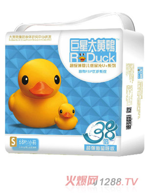 大黃鴨紙尿褲是大黃鴨集團(tuán)(香港)有限公司旗下主打品牌產(chǎn)品,公司生產(chǎn)的紙尿褲/片質(zhì)量好,品質(zhì)上乘,根據(jù)嬰幼的幼嫩皮膚專業(yè)制作,不會(huì)對(duì)bao--bao的屁屁有任何摩擦。大黃鴨紙尿片具有一下優(yōu)點(diǎn),是代理商理想選擇。