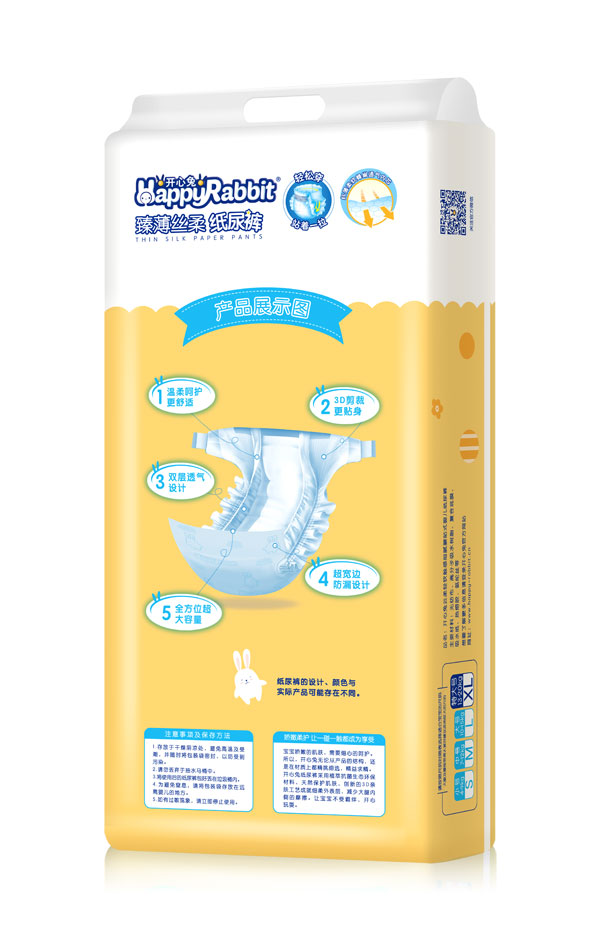 “開心兔”是廣州世盛貿(mào)易有限公司旗下紙尿褲品牌,致力于為媽媽和寶寶提供更全面更周到的服務(wù),開心兔系列紙尿褲5D維度立體剪裁,讓寶寶時刻樂動,舒適自如;0.2mm超薄芯體設(shè)計無墜力;進(jìn)口SAP雙分子搭配獨特導(dǎo)流設(shè)計,強瞬瑣吸,不起坨,不斷層;大環(huán)腰彈性立體腰圍,柔如媽媽的懷抱;超級綿柔內(nèi)層面溫暖呵護(hù);千萬個納米透氣小孔的PE透氣層,干爽透氣不紅PP;開心兔紙尿褲,250毫升水6秒瞬吸鎖水、60秒瞬吸無反滲,1片高于同類產(chǎn)品30%鎖水力。