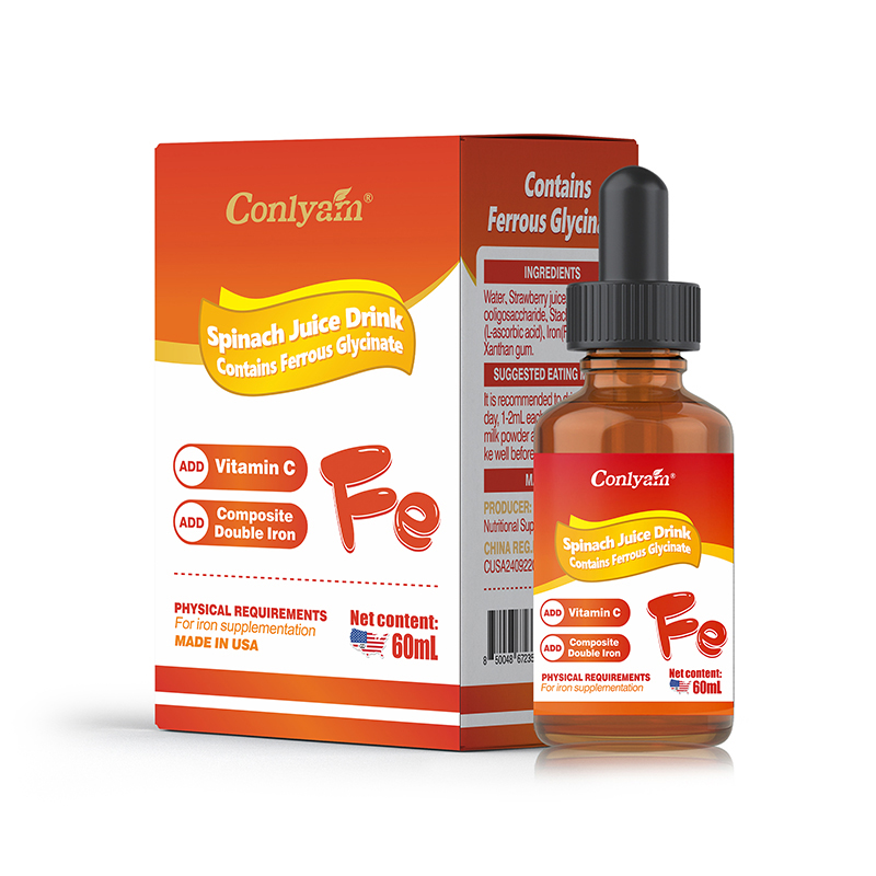 ①采用復(fù)合雙鐵源:甘氨酸亞鐵+菠菜,每毫升含鐵5mg