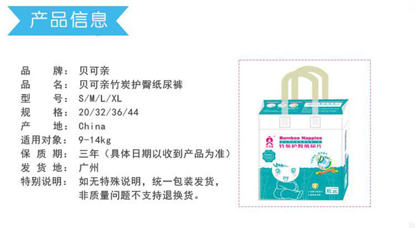 貝可親竹炭護(hù)臀紙尿褲產(chǎn)品展示