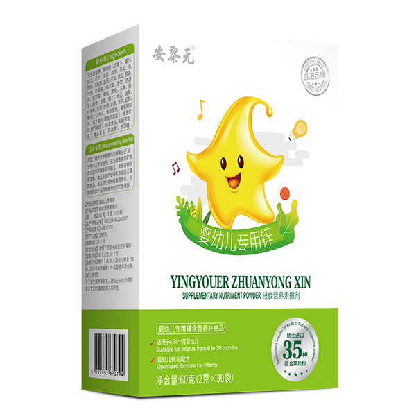 生長(zhǎng)發(fā)育遲緩,注意力不集中,營(yíng)養(yǎng)不均衡,長(zhǎng)不高,怎么辦?安黎元嬰幼兒專用 鈣·鐵·鋅來啦,針對(duì)小兒體質(zhì)研發(fā),符合國(guó)家生產(chǎn)標(biāo)準(zhǔn),精選優(yōu)質(zhì)原材料,采用先進(jìn)工 藝制作,牢牢鎖住營(yíng)養(yǎng)不流失。