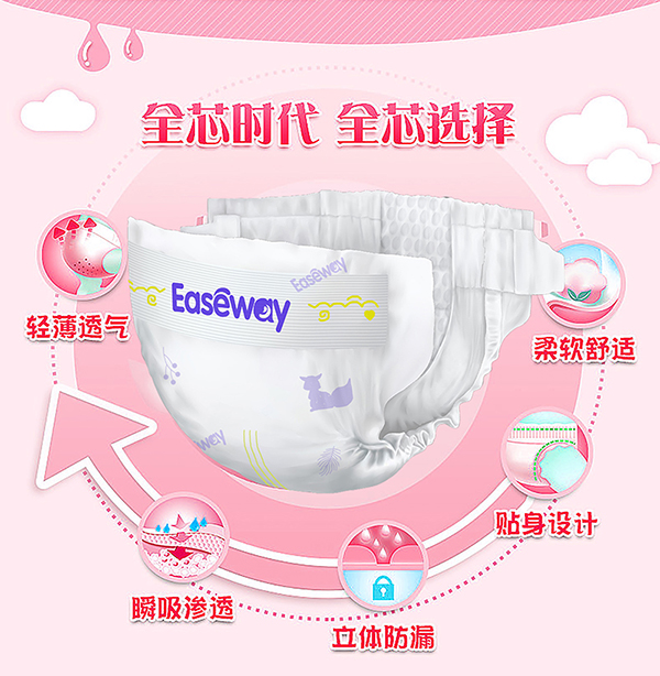 宜氏紙尿褲,進(jìn)口高分子薄型吸液芯體,獨(dú)特凹槽設(shè)計(jì),立體多維吸收,倍量瞬吸,干爽舒適,大吸量,整夜無憂。速滲親柔面層,多維高效吸收,貼體綿彈環(huán)腰,科學(xué)無束裁剪,雙層拒水防漏,全方位透氣設(shè)計(jì),110mm加寬芯體,雙倍瞬吸,不斷層,不起坨,一片能用10小時(shí)!加寬立體護(hù)圍防止側(cè)漏,柔軟立體護(hù)圍,和漏尿說byebye。自動(dòng)外翻,柔軟有彈性,讓寶寶活動(dòng)自如。