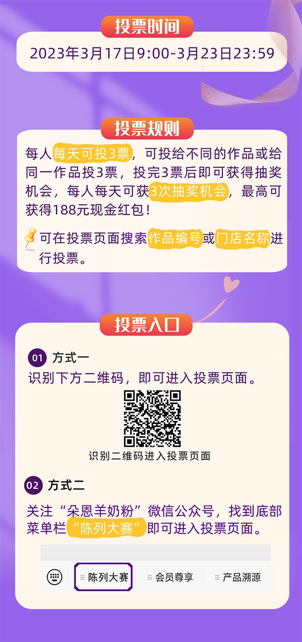 朵恩百佳創(chuàng)意陳列大獎(jiǎng)賽開(kāi)始投票啦!參與投票贏最高188元現(xiàn)金紅包!