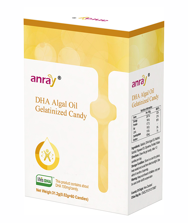 本品添加DHA藻油。每顆糖果DHA含量100毫克,DHA藻油推薦食用量≤300毫克/天(以純DHA計(jì))