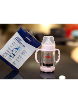 康樂新型奶瓶的瓶身帶溫度顯示卡,可隨時顯示泡奶溫度,讓媽媽更放心,外殼采用進口食品級塑料制成,隔熱保溫,防燙防摔,安全性大大提高。內(nèi)膽采用的是一級抗水性能的耐高溫材料高硼硅玻璃,它不含雙酚A,不含荷爾蒙干擾物質(zhì),無毒無味,且該材質(zhì)為中性玻璃,遇酸性或者堿性物質(zhì)或者高溫消毒也不會釋放出有毒有害物質(zhì),真正做到安全環(huán)保。