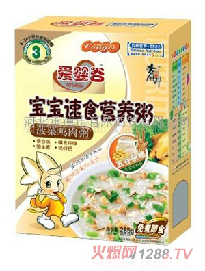很多父母都知道菠菜中含有豐富的營養(yǎng)物質(zhì),這些營養(yǎng)物質(zhì)對bao--bao的健康很重要,因此父母應(yīng)給bao--bao適當(dāng)?shù)难a(bǔ)充一些菠菜。下面小編就給大家推薦一款不錯的嬰童營養(yǎng)輔食--愛嬰谷菠菜大骨粥。愛嬰谷菠菜大骨粥以優(yōu)質(zhì)天然菠菜和優(yōu)質(zhì)大骨為原料,同時又經(jīng)過特殊制作工藝精心制作而成,營養(yǎng)豐富均衡,是理想的嬰童營養(yǎng)輔食。