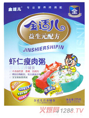 金適兒蝦仁瘦肉粥是針對bao--bao營養(yǎng)需求特別研制,采用科學(xué)配方,特別添加蝦肉蝦仁,不僅營養(yǎng)均衡全面,而且口味更佳,適合挑食、厭食的bao--bao食用,是眾多bao--bao的輔食專家。